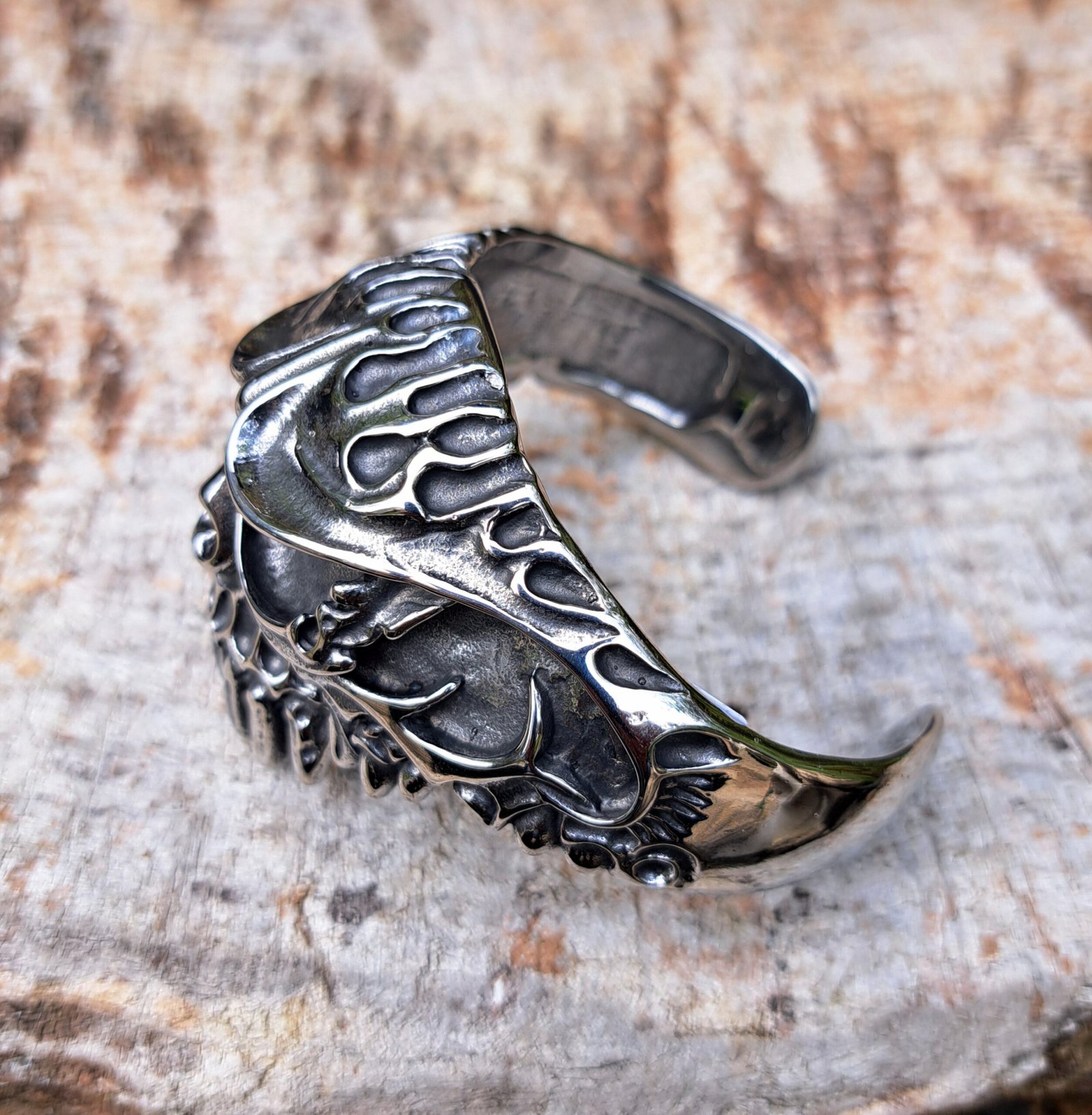 Biker Gothic Skull Cuff Bracelet – Heavy Metal Stainless Steel Bangle