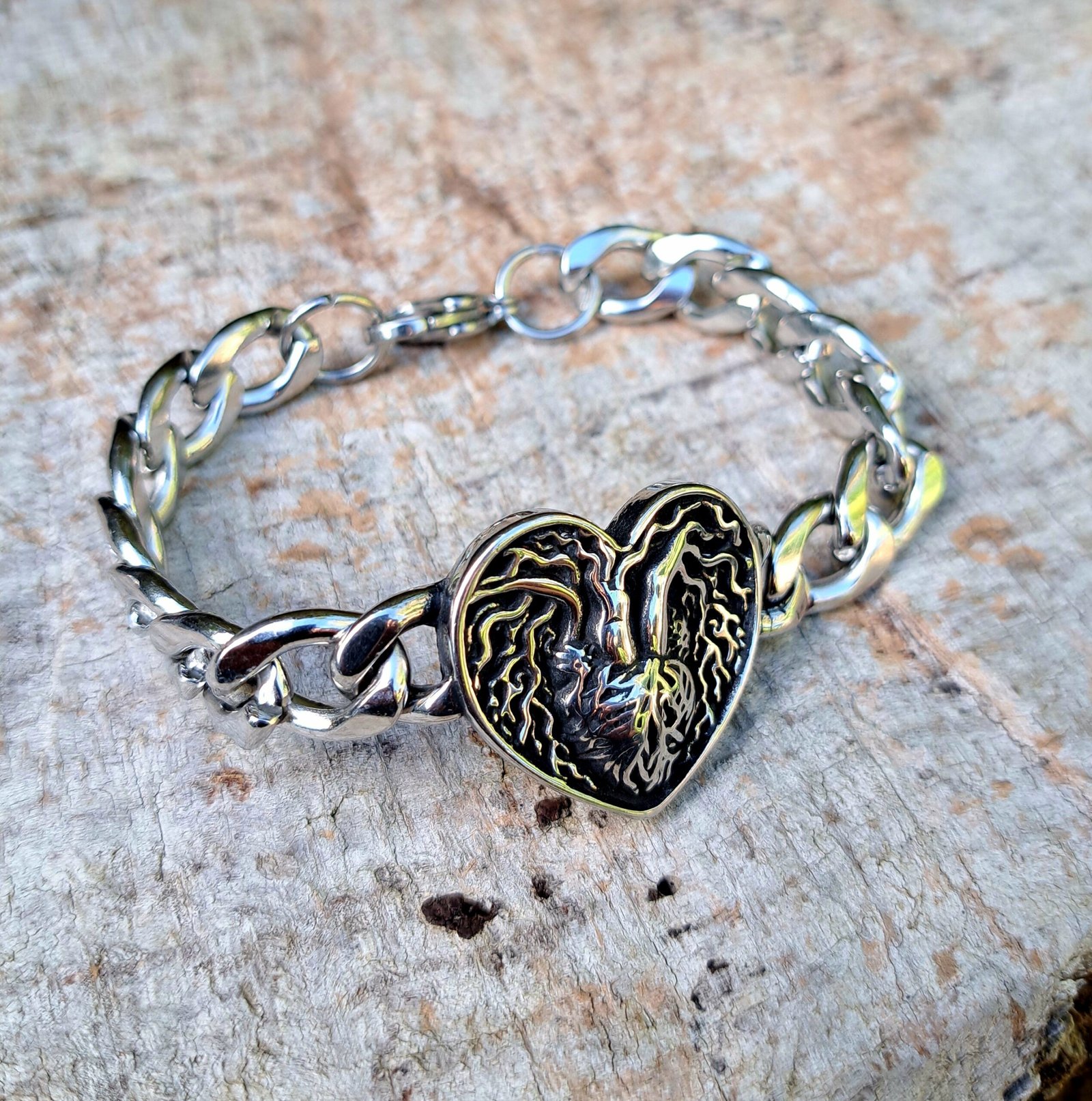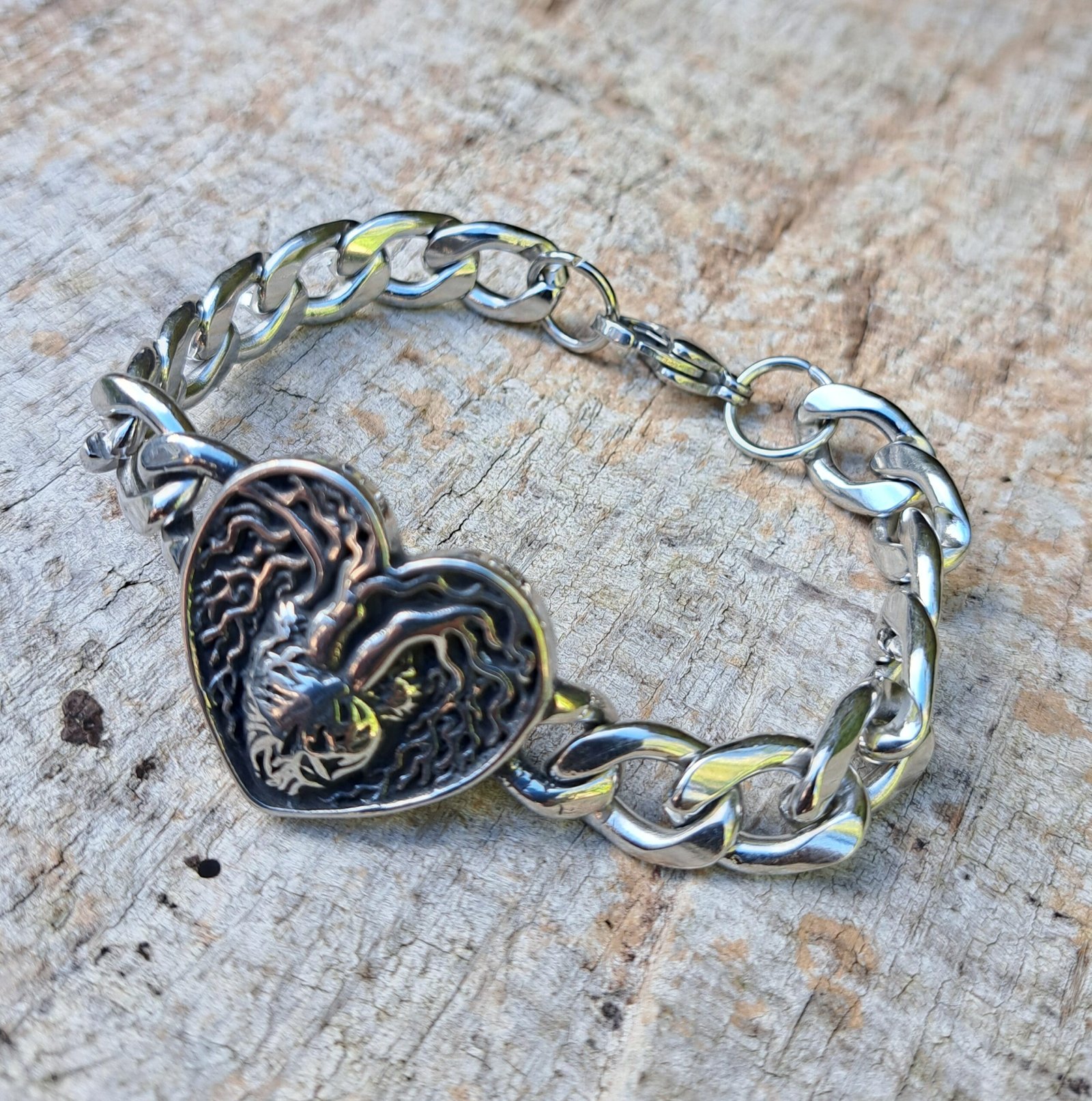 Heart Tree of Life Bracelet – Stainless Steel Norse Inspired Jewelry (21cm)